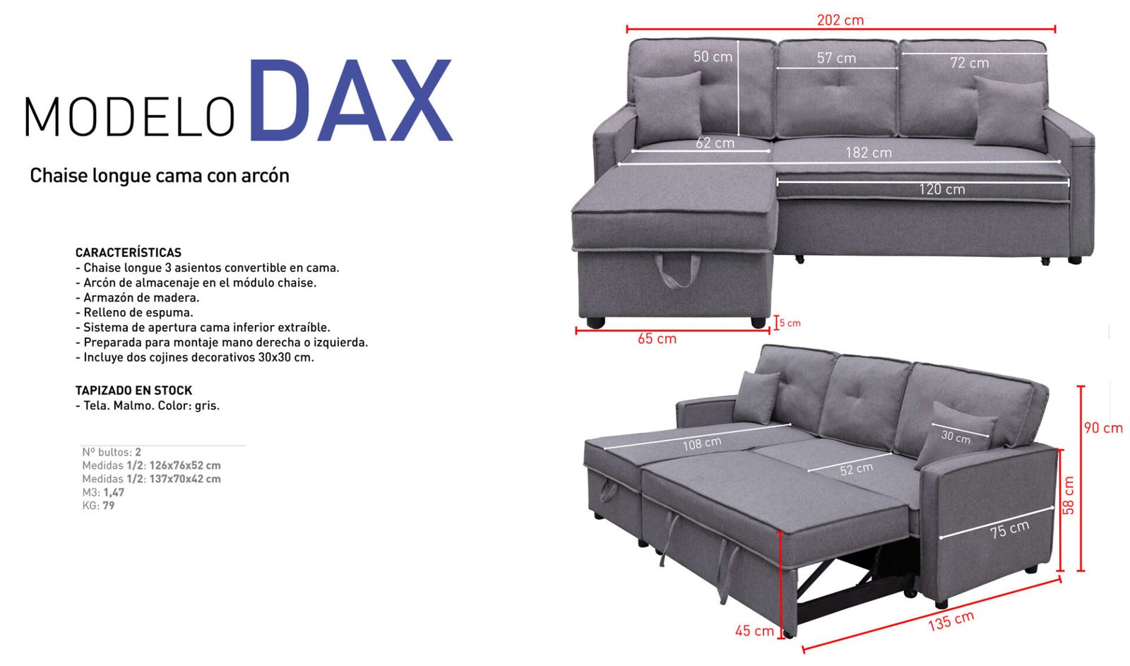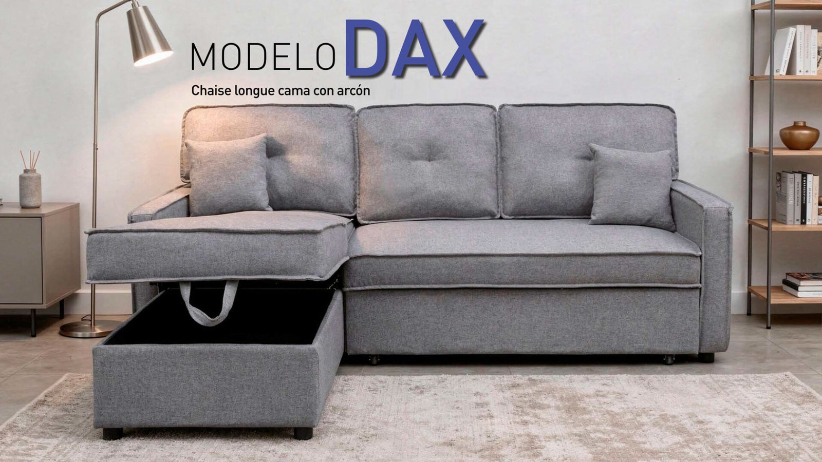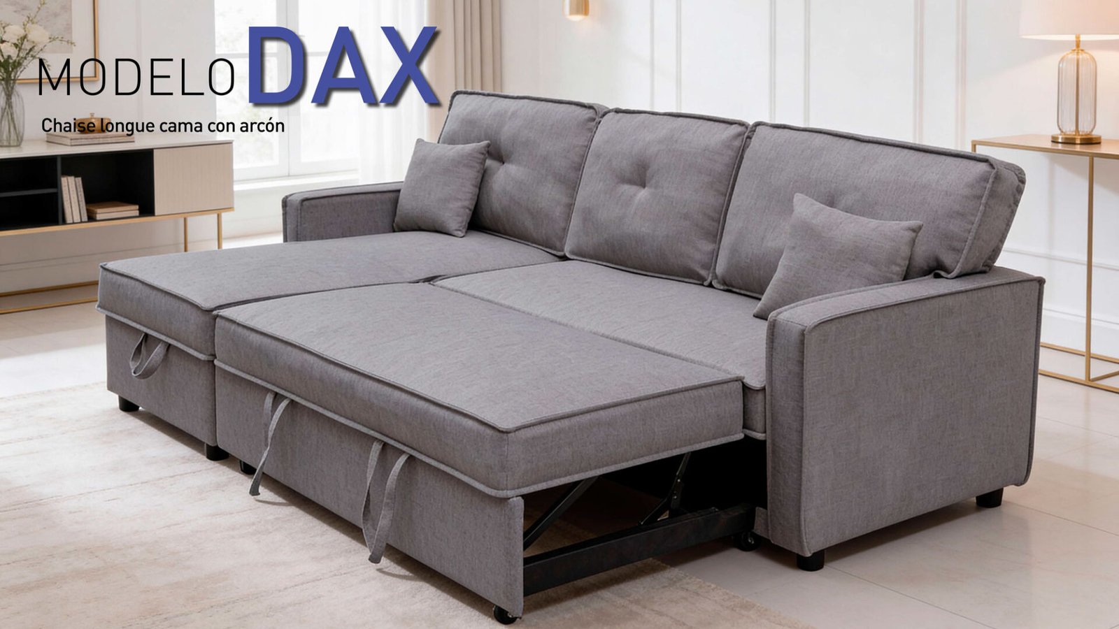Con su combinación de cama extraíble, arcón de almacenamiento y chaise longue, el modelo DAX se convierte en una opción práctica, elegante y muy funcional para cualquier hogar moderno.